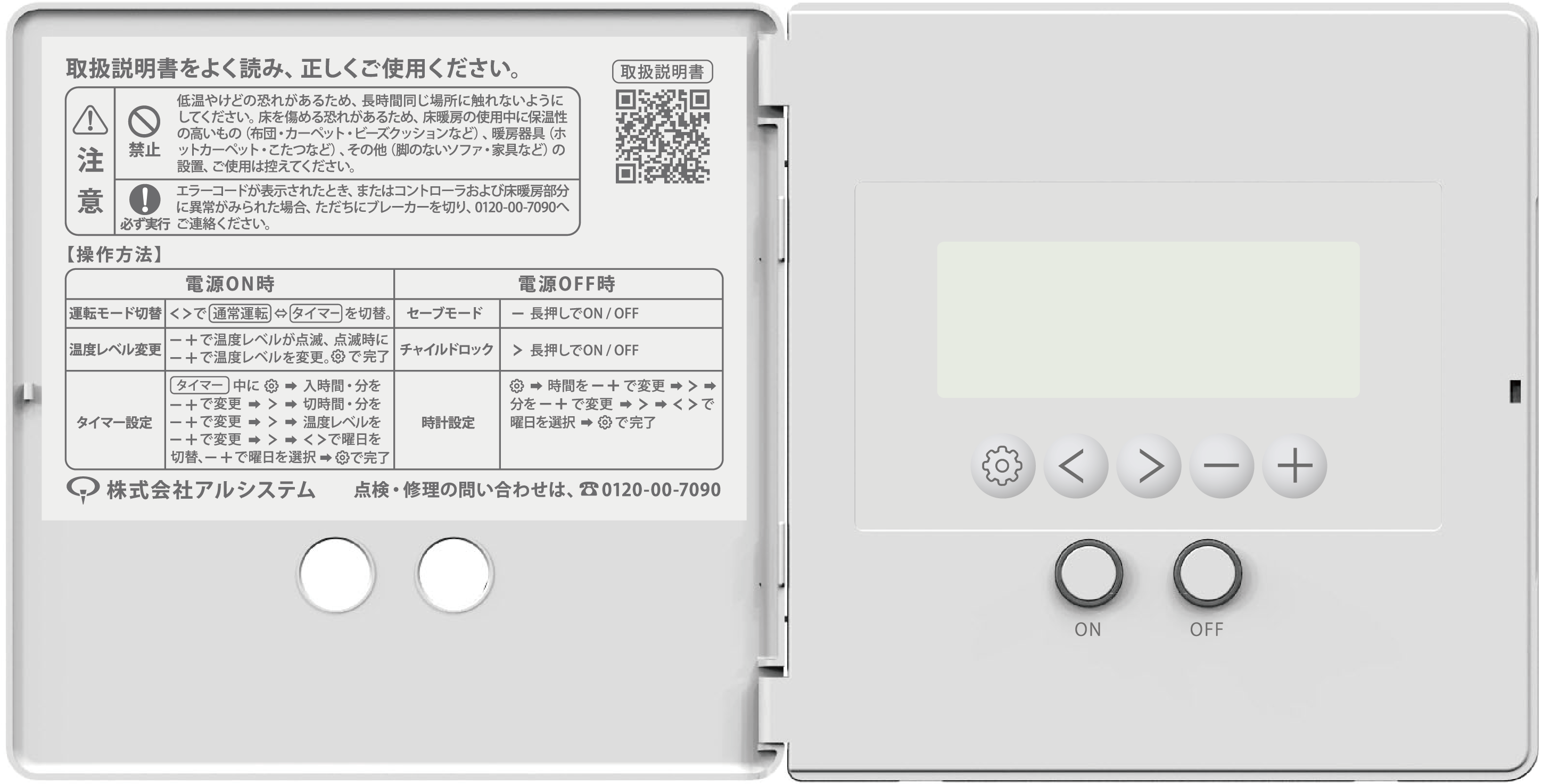 タイマ運転設定 1日2回ON/OFF設定可能